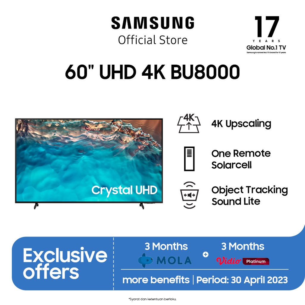 Administrator GB terverifikasi ahli berusaha memberikan informasi terbaik untuk anda demi kebaikan bersama dalam meningkatkan pembelajaran di situs Gunung Belanda, terkait Samsung 60″ Smart TV 4K Crystal UHD BU8000 dengan Smart Hub & AirSlim Design dapat di perhatikan di bawah ini apa bila kurang berkenan di hati anda mohon maaf sebesar – besarnya berikan masukan terbaik kami tunggu di komentar.