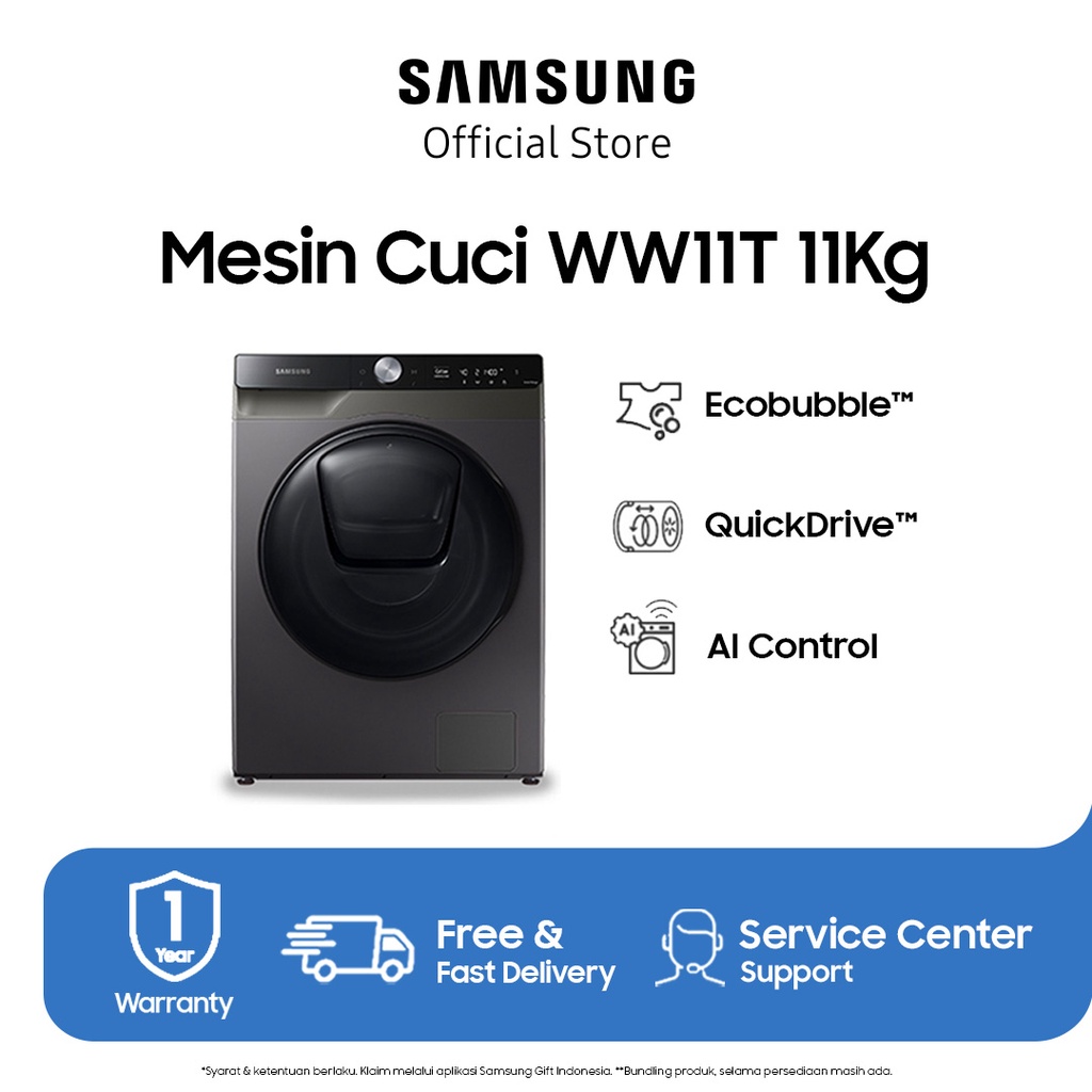 | Samsung Mesin Cuci Front Loading 11 Kg dengan Ecobubble™, QuickDrive™, AI Control – WW11T754DBX/SE |