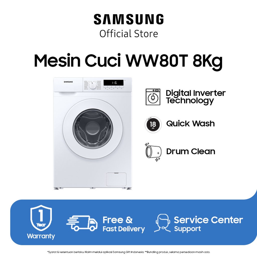 | Judul | Samsung Mesin Cuci Front Loading 8 Kg Quick Wash 18″” – WW80T3040WW/SE |