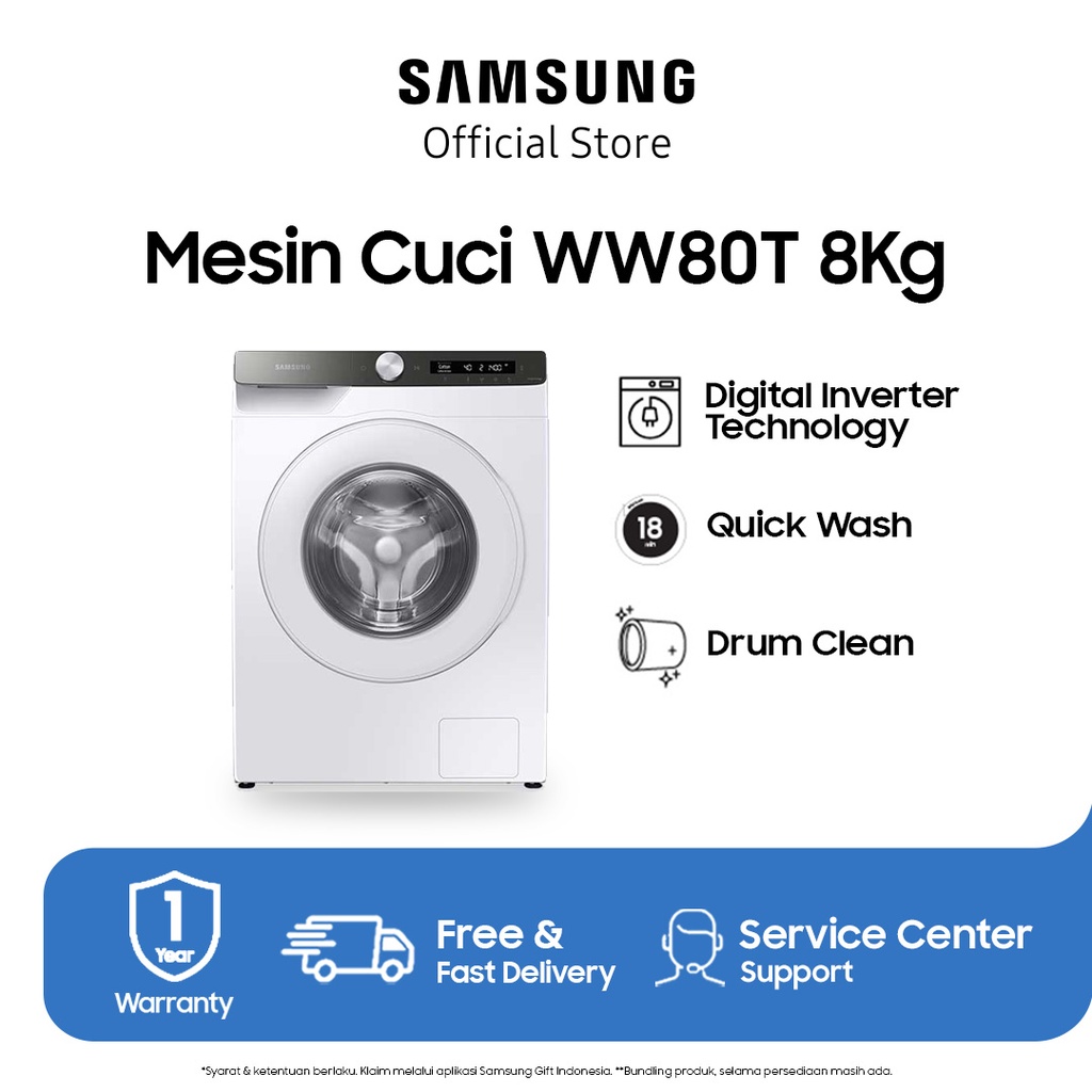 | Judul | Samsung Mesin Cuci Front Loading 8 Kg dengan Ecobubble™, AI Control, Steam – WW80T504DTT/SE |
