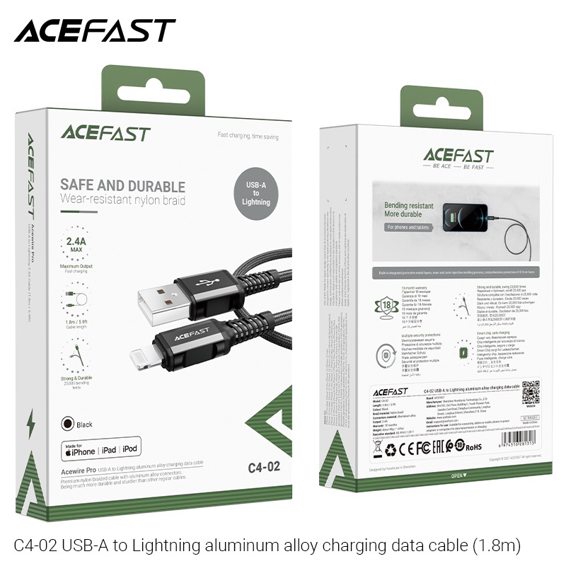 | Judul | Spesifikasi ACEFAST C4-02 USB-A to Lightning aluminum alloy charging data cable(1.8m) |