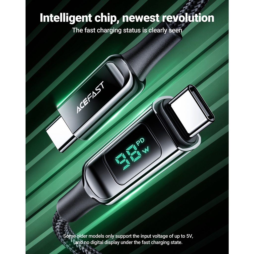 | ACEFAST C6-03 USB-C to USB-C 100W zinc alloy digital display braided charging data cable |