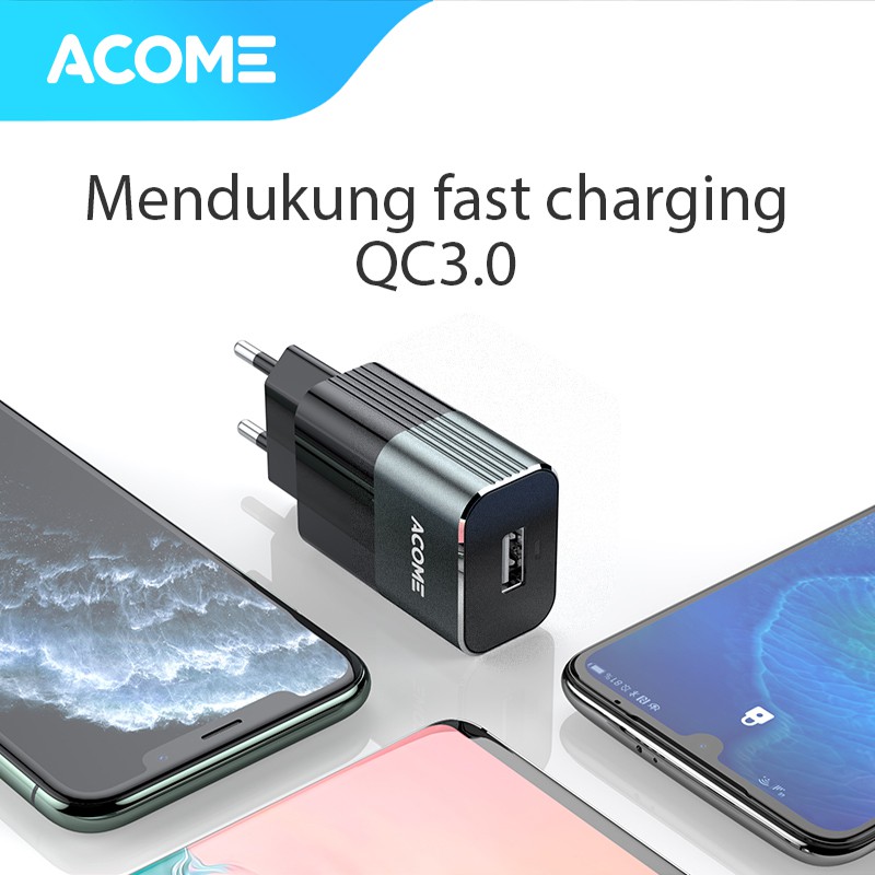 | ACOME Charger QC3.0 AiC Fast Charging (AC01) Free Kabel Data Micro USB iPhone Type-C (AK Series) Ori |