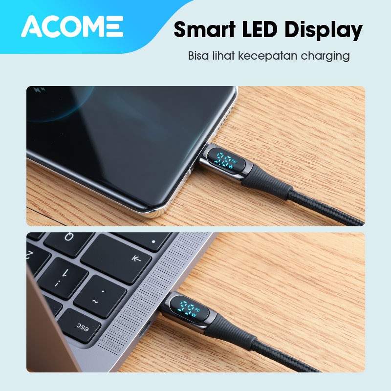 | ACOME Kabel Data 100cm C To C 100W Fast Charging 5A Smart LED Display Garansi Resmi 1 Tahun APD100 |