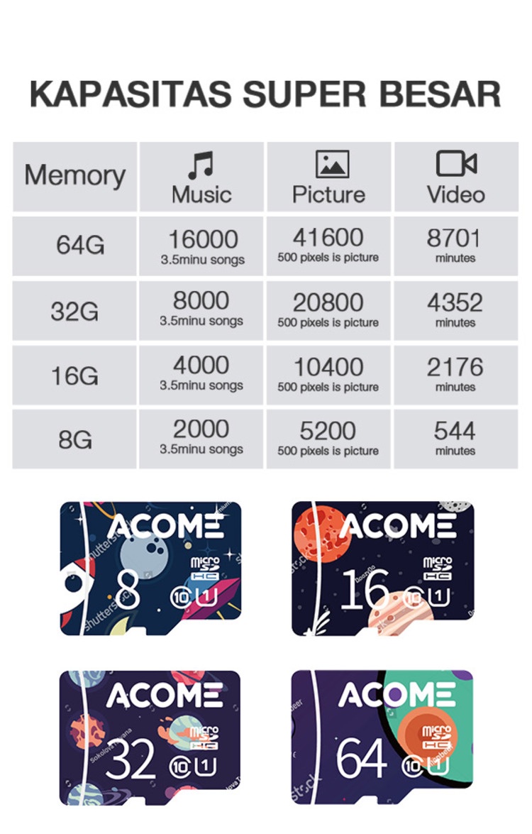 Administrator GB terverifikasi ahli berusaha memberikan informasi terbaik untuk anda demi kebaikan bersama dalam meningkatkan pembelajaran di situs Gunung Belanda, terkait Spesifikasi ACOME Micro SD Card 8GB/16GB/32GB/64GB High Speed Up To 90MB/S Class 10 Memory Card All device dapat di perhatikan di bawah ini apa bila kurang berkenan di hati anda mohon maaf sebesar – besarnya berikan masukan terbaik kami tunggu di komentar.