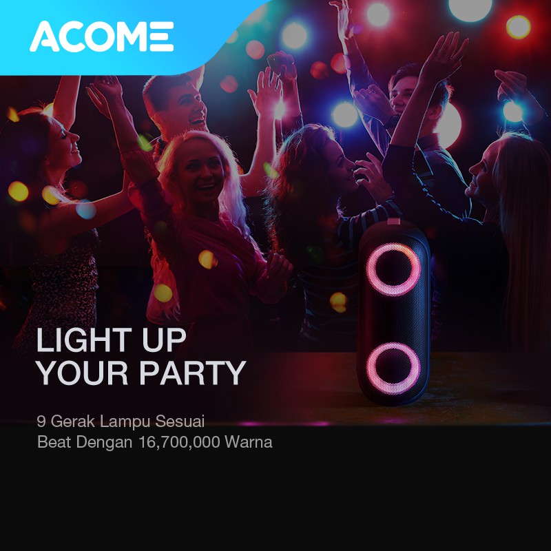 | Judul | Spesifikasi ACOME Super Bass Speaker Bluetooth 5.0 20W IPX7 Waterproof RGB Light Rhyme Rave Party A20 |