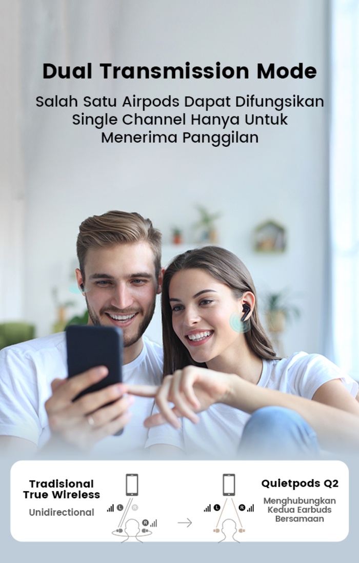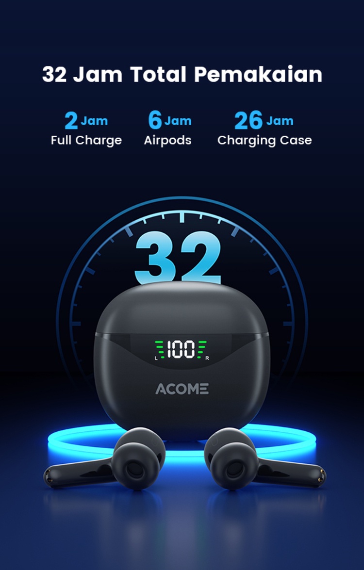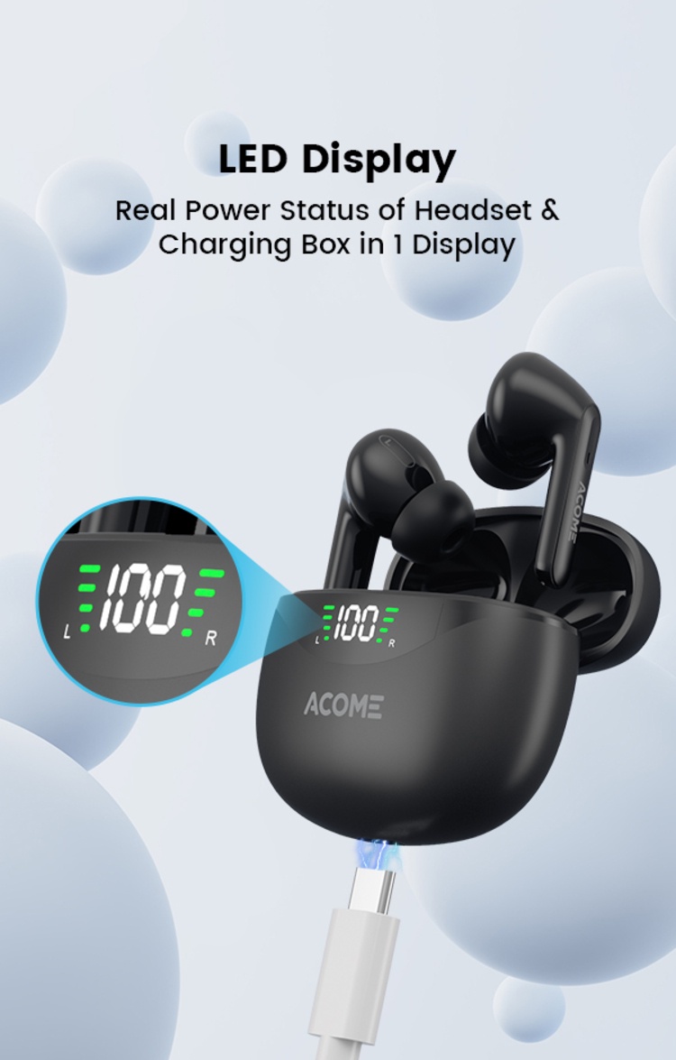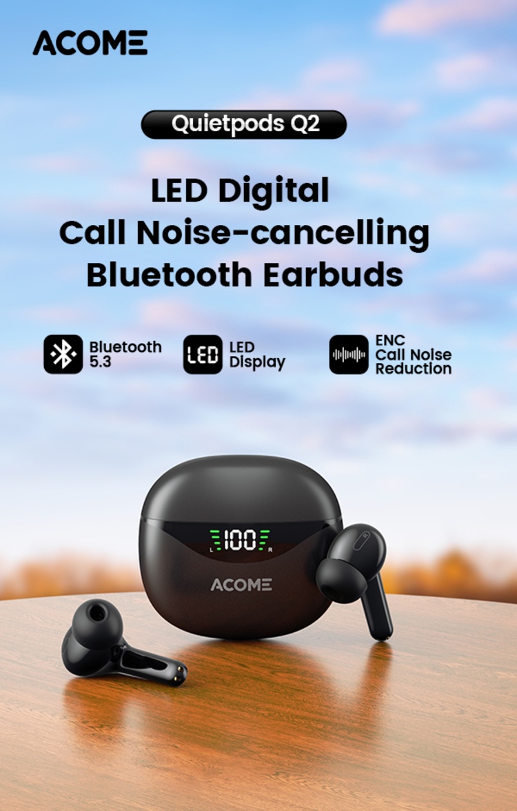 | Acome Headset Earphone Bluetooth TWS 5.3 ENC Call Noise Reduction LED Display Garansi Resmi 1 Tahun Quietpods Q2 |