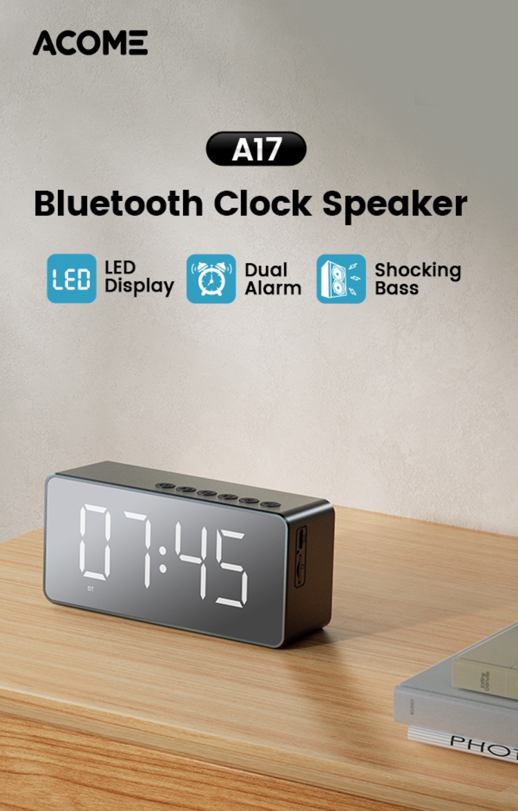 | Acome Speaker Bluetooth 5.2 Jam Alarm LED Display Shocking Bass Garansi Resmi 1 Tahun A17 |