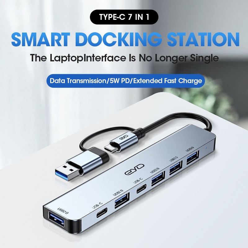 | AITO 7 in 1 Hub USB 3.0 Docking Station 7 Port Konverter Tipe C Usb-C Converter Komputer Laptop Adapter Hub Adaptor Power USB Hub 2.0 |