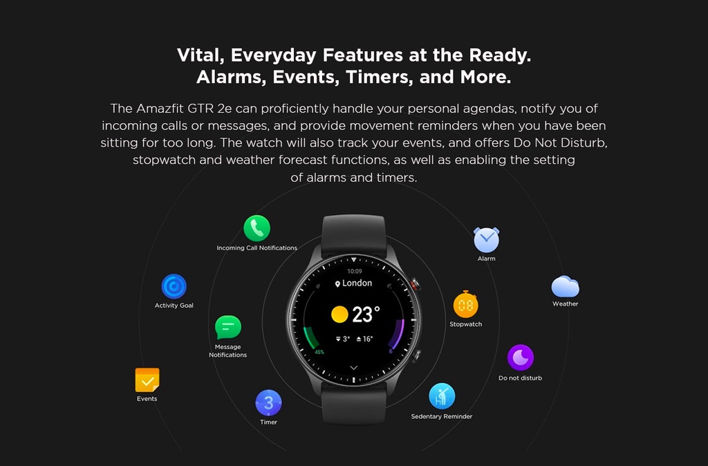 | Amazfit GTR 2e Fitness smartwatch 1.39″ HD AMOLED Always-On display, SpO2, Heart rate, Sleep, Stress monitor, jam tangan with 90 sports modes, 24 day Battery life, 5 ATM waterproof |